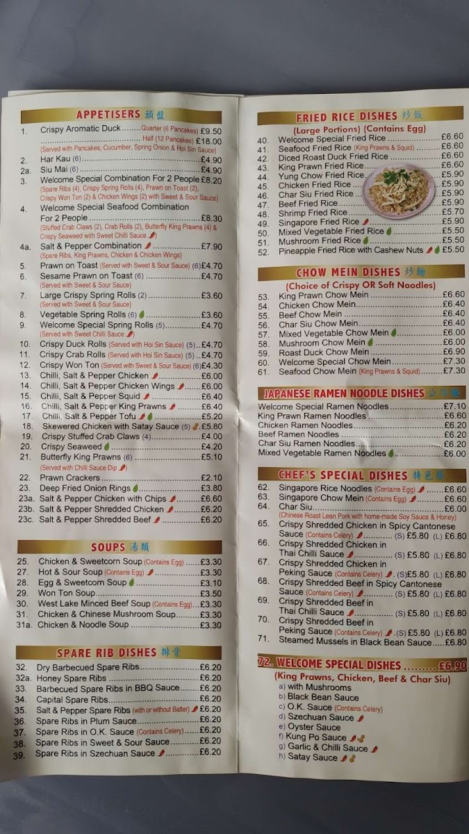 Welcome to The Welcome Chinese Restaurant, your go-to destination for authentic Chinese cuisine in Hemsworth, Pontefract. Located at 21 Barnsley Rd, this delightful eatery offers a diverse menu that will tantalize your taste buds. A standout option is their Special Meal Deal, featuring succulent honey spare ribs and crispy sweet and sour chicken balls, served alongside egg fried rice, chips, and prawn crackers for only £21.50.